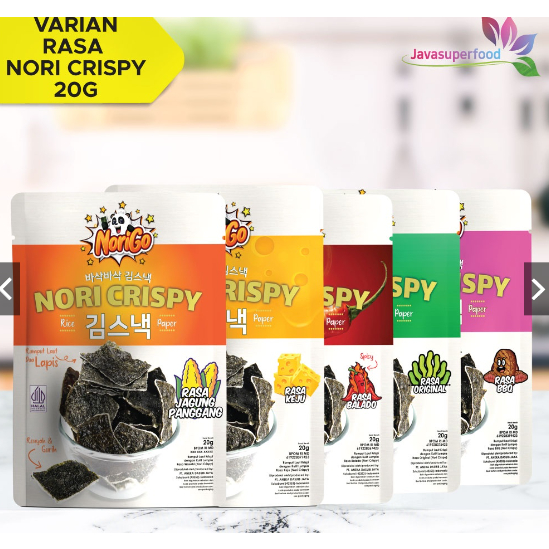 Nori Crispy Java Super Food adalah Nori Crispy yang terbuat dari bahan - bahan yang berkualitas serta memiliki rasa yang enak dan lezat.