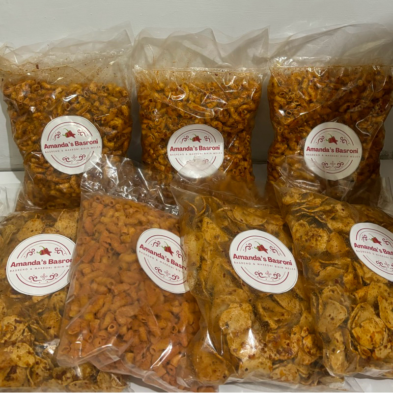 Amanda’s Basroni (Basreng dan Makroni) beraneka macam rasa dan banyak varian lainnya.
