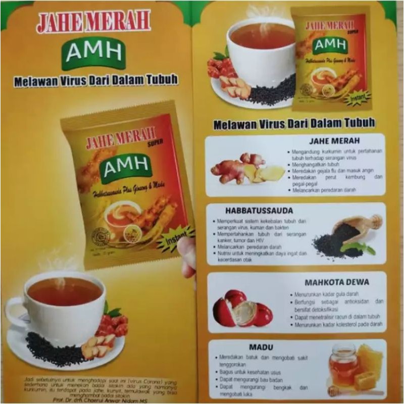Jahe merah AMH Original merupakan minuman herbal kekinian yang di formulasikan dari berbagai macam herbal dan rempah pilihan, sehingga mampu untuk menjaga daya tahan tubuh Anda
