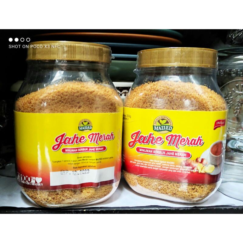 Jahe merah ini bercampur dengan gula. cocok di seduh di setiap kesempatan, terutama di masa pandemi ini. diminum hangat hangat lebih nikmat.
