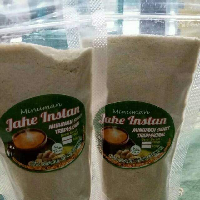 Jahe bubuk instan terbuat dari bahan bahan alami yaitu gula ,sereh,kayu manis ,jahe ,cengkeh