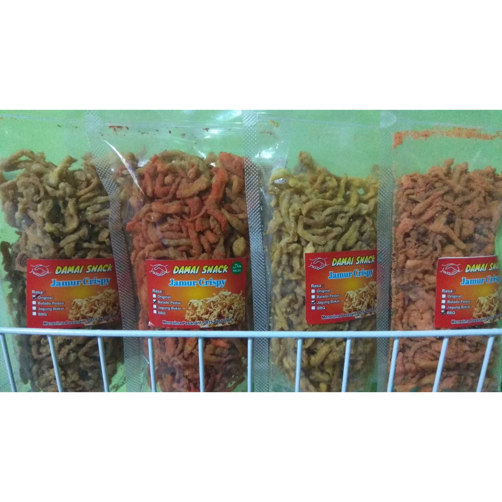 Jamur Crispy ini terbuat dari jamur pilihan, diolah dan dimasak dengan sangat baik sehingga cita rasanya begitu terasa gurih dan nikmat. Dan termasuk hasil olahan sendiri (Home Made)