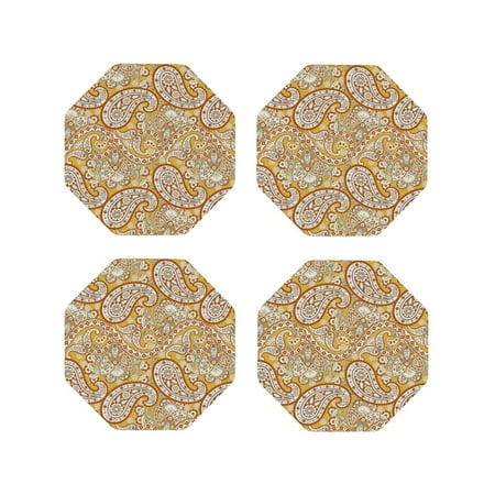 Leather Coasters Set of 4 - Paisley Pattern No.9088 Lightweight Non-Slip Drink Coasters for Desk Anti-Scalding Desk Cup Coasters for Office Table Decor Octagon