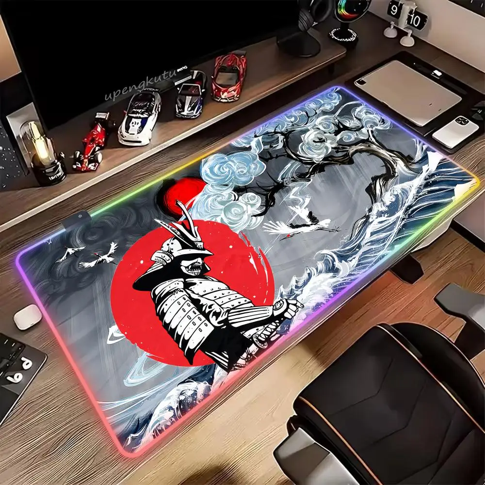 Japanese samurai devil Mouse Pad RGB HD XXL Cute Mouse Pad Keyboard Mousepad PC Large Table Pad Gaming Laptop LED Desk Mat