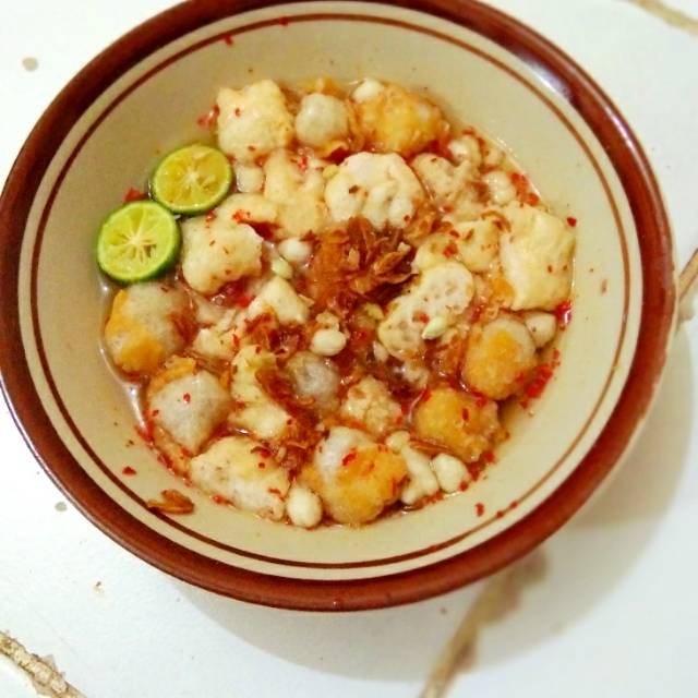 Isi japlak : Tahu kering , batagor kering , pangsit mini ,cuanki lidah , sukro cikur , bumbu asin + pedas jeruk limau , bawang goreng