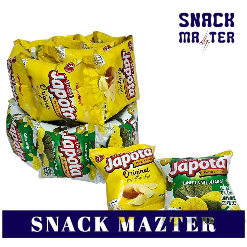 Japota adalah snack potato chips terbaru dari Calbee Wings yang terbuat dari kentang asli, diolah menggunakan thin-cut technology sehingga membuat chips Japota asli krenyesnya! Japota juga mengandung taburan bits asli yang membuat rasanya lebih enak. Dijual per bungkus bernetto 14 gram per bungkusnya. BerBPOM dan Halal MUI. Varian Tersedia: