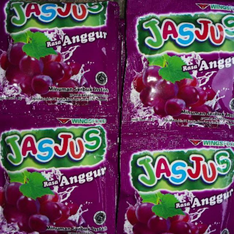 jasjus rasa anggur. cara pembuatannya sangat simpel. masukan 1 sashet jasjus ke dalam gelas. tambah air secukupnya dan kasih es batu agar terasa dingin. jasjus rasa anggur siap untuk dinikmati