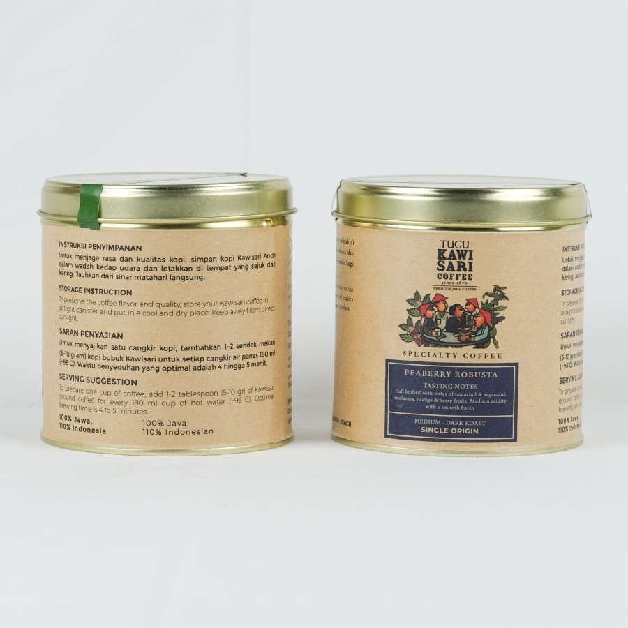 Biji peaberry adalah biji kopi tunggal yang lebih besar yang tumbuh di dalam ceri, oleh karena itu mengandung lebih banyak nutrisi daripada biji kopi biasa. Hanya mewakili 5-10% dari keseluruhan panen Robusta, Kawisari Robusta Peaberry memiliki rasa yang lebih lembut dan tekstur yang padat, dengan tingkat yang lebih tinggi kafein daripada kopi biasa, menciptakan sensasi yang kontras.