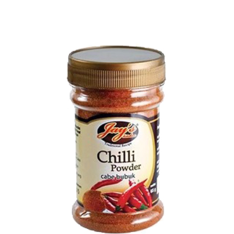 Jay's Chili Powder 65gr merupakan bubuk cabe instant yang siap ditambahkan ke masakan buatan rumah. Masakan menjadi pedas dan membuat ketagihan.