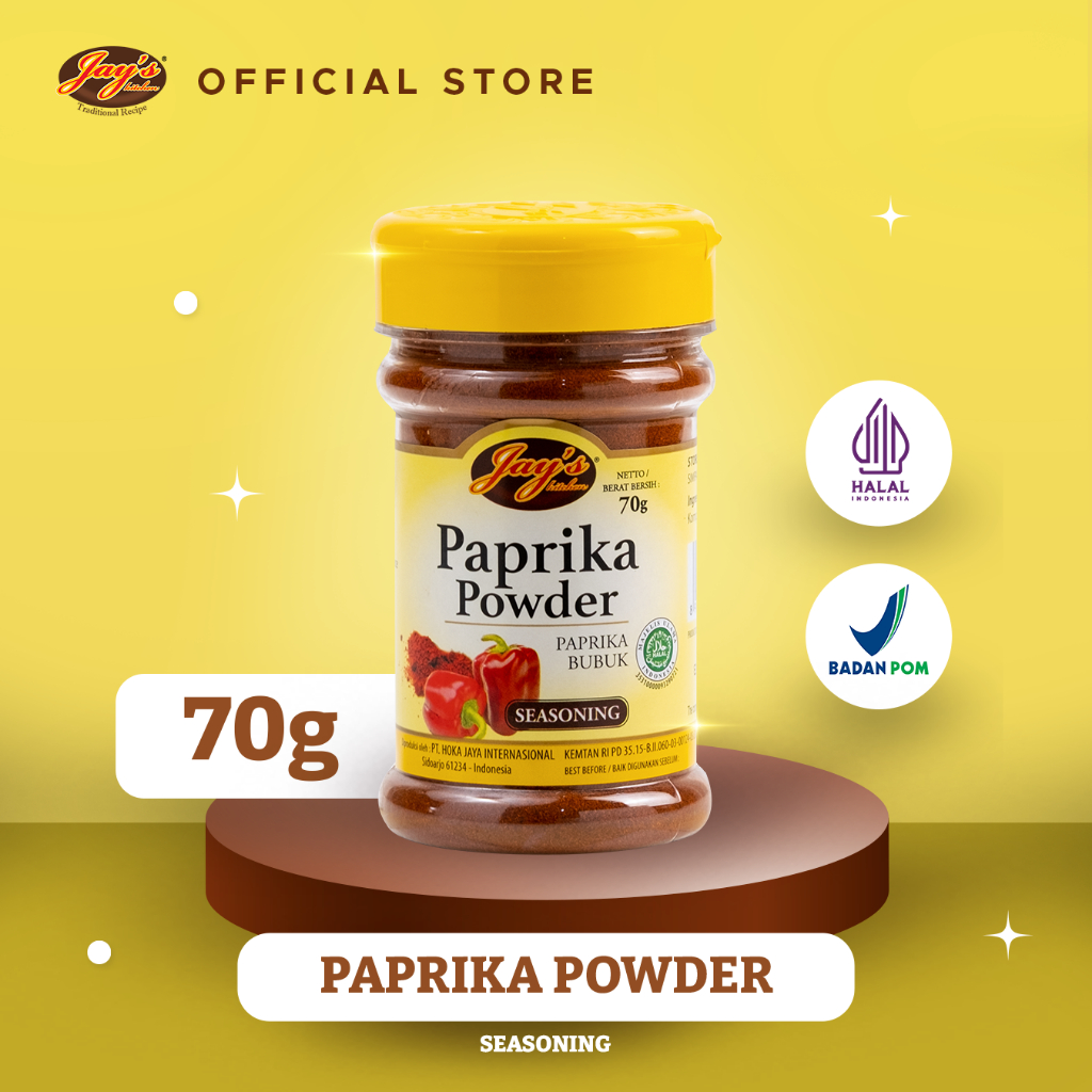Terbuat dari buah Paprika asli yang telah diproses menjadi bubuk, memiliki rasa yang enak dan berkualitas tinggi.