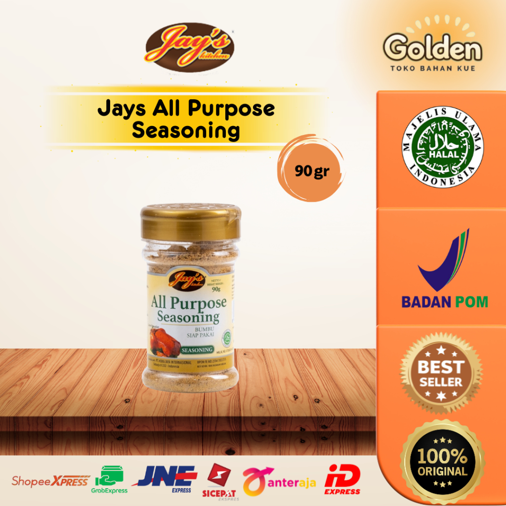 Jay’s Kitchen All Purpose Seasoning adalah campuran rempah‑rempah, herbal, dan garam dalam satu bubuk penyedap serbaguna. diproduksi tanpa tambahan MSG atau perasa buatan. Ini merupakan alternatif pengganti garam dan merica untuk memperkaya rasa makanan sehari‑hari
