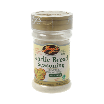 Bumbu roti bawang putih Jay's Garlic Bread Seasoining merupakan bumbu yang digunakan utnuk membuat Garlic Bread autentik seperti di kafe dan restoran, tanpa MSG dan perasa tambahan.