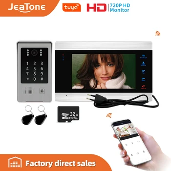 Jeatone 7''Tuya Video Door Phone Video Intercom Code Keypad/RFID Card/APP Unlock Motion Detection Access Control, Multi-language