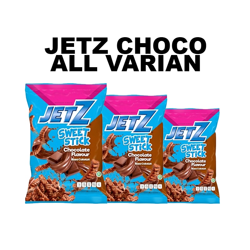 JetZ Produksi PT. Indofood Sukses Makmur tbk, snack berbentuk stick berbalut cokelat yang nikmat. Bernetto 12 gram per bungkusnya. Beratribut lengkap BPOM dan ada Logo Halal MUI di kemasan.