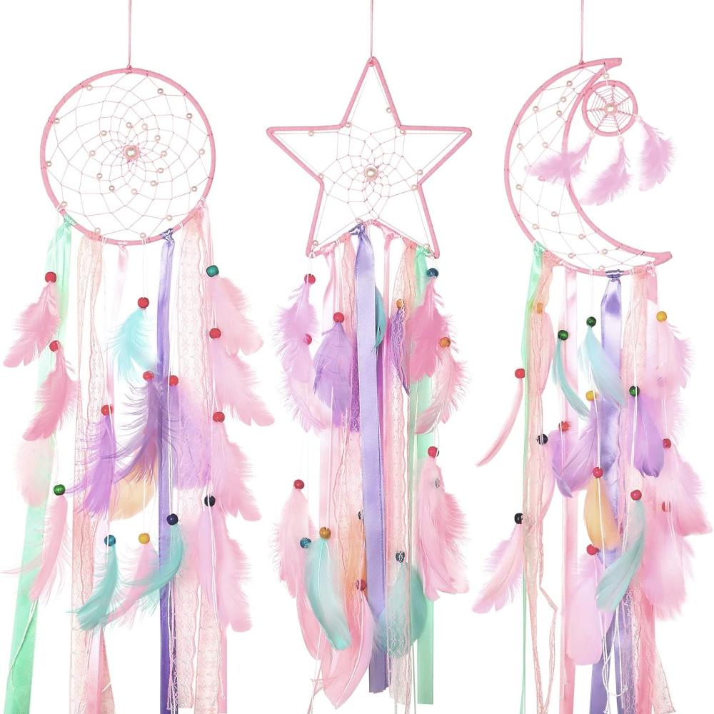 Jetec 3 шт. Ловец снов Луна Солнце Звезда Дизайн Ручная работа Традиционный дизайн Ремесло Украшение Настенное искусство Подвесное Домашнее украшение Спальня Свадьба(Пастель Коло розовый