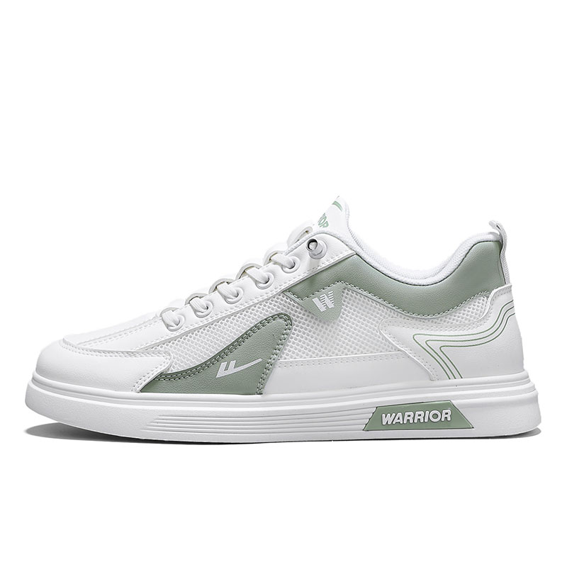 WARRIOR Скользоустойчивые износостойкие дышащие мужские скейтерские кеды лоу-топ бело-зеленые, цвет White Green
