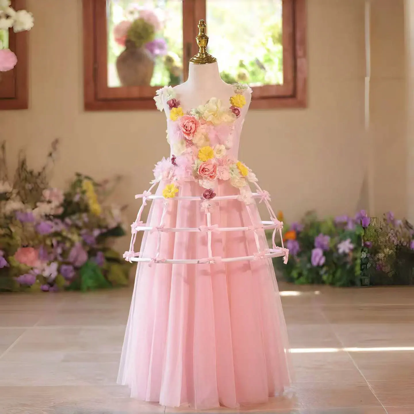 Jill Wish J586 Роскошное розовое платье с цветочным принтом для девочек, длинное платье принцессы с цветами из тюля, детское праздничное платье на свадьбу, день рождения, вечернее платье