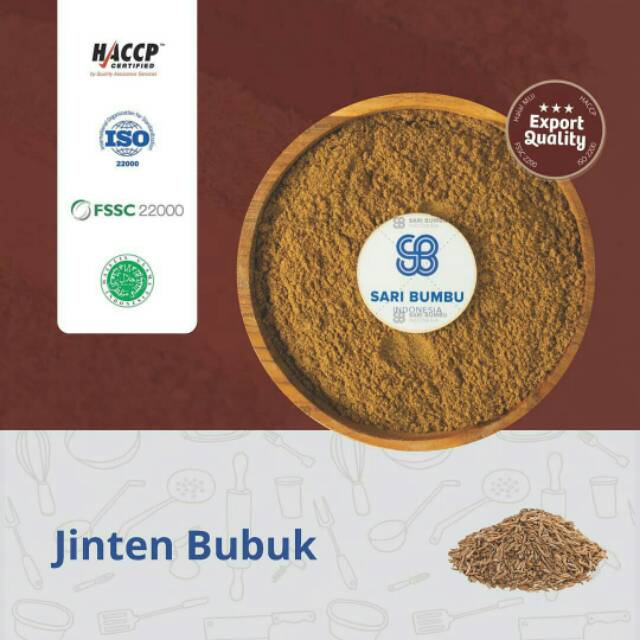 Jinten Bubuk yang di proses dengan sangat higienis dengan standar mutu Internasional. Jinten Bubuk ini seringkali untuk masakan India dan Timur Tengah seperti masakan kari, pacri, dan kebab. hidangan Meksiko yang berbahan domba dan ayam. Masakan Indonesia yang sering menggunakan jintan adalah opor, gulai, kari Ayam. Aromanya sangat harum, agak manis, cocok untuk cita rasa dengan rasa yang kuat dan pedas. Jinten / Jintan Bubuk menjadi campuran bumbu hidangan tradisional di berbagai daerah Nusantara.