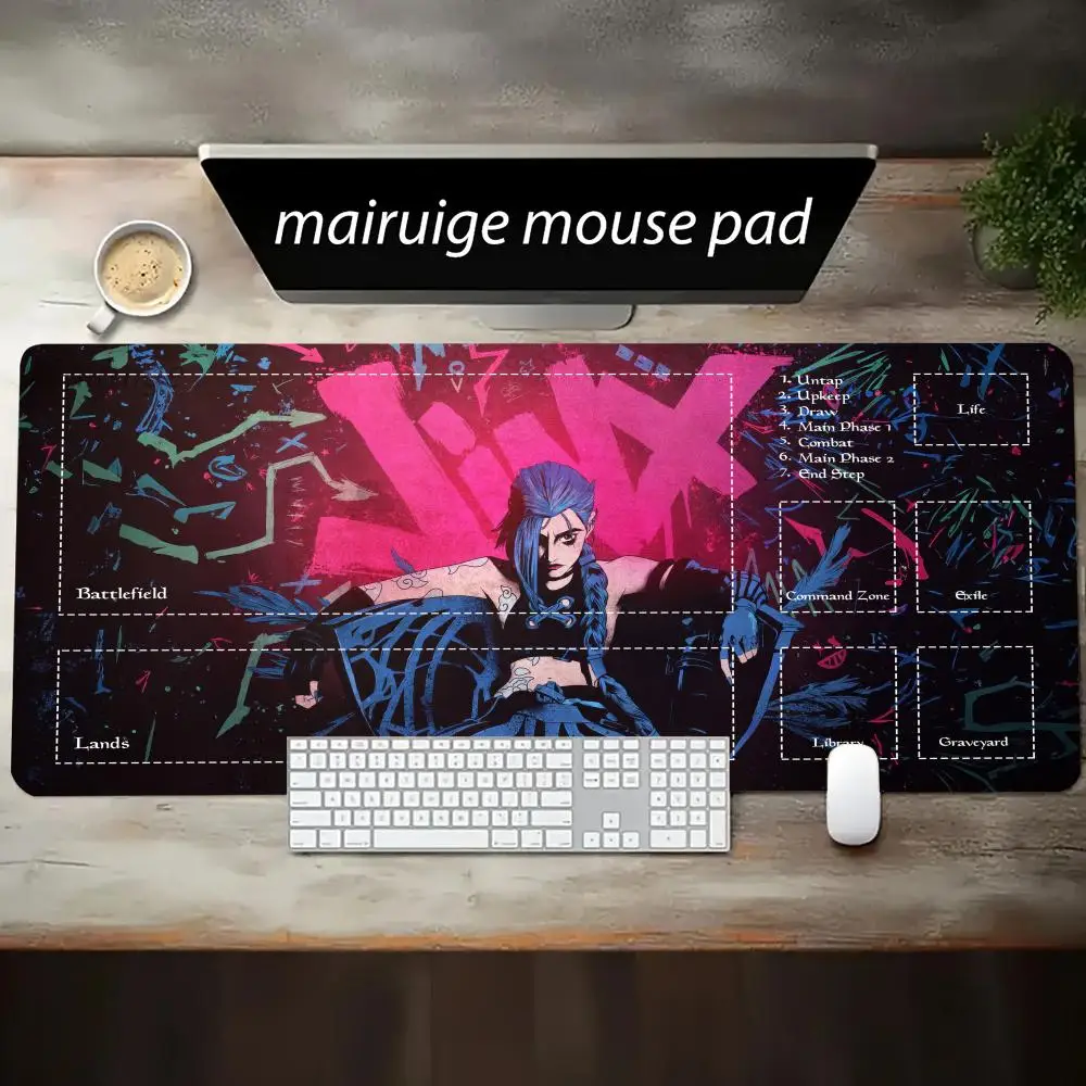 Jinx Arcane Коврик для мыши Игровой коврик Большой компьютерный офисный коврик для мыши XXL Противоскользящие резиновые настольные коврики для MTG DTCG CCG RPG Trading Card