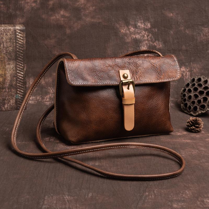 Johnature Винтажная женская маленькая сумка из натуральной кожи, повседневная, натуральная, мягкая коровья кожа, однотонная, сумки на плечо и через плечо кофейный