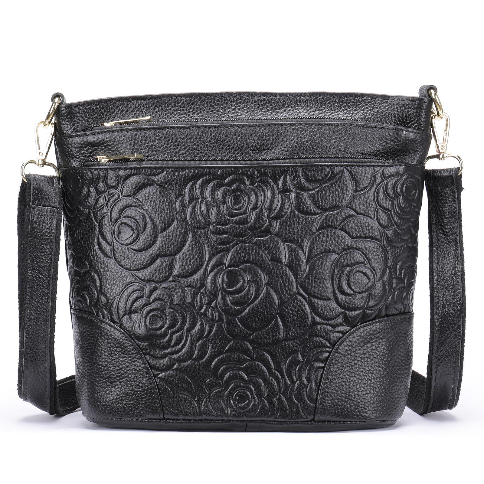 Johnature Женская сумка из натуральной кожи, тисненые сумки через плечо, однотонная мягкая кожаная сумка с несколькими отделениями через плечо чёрный