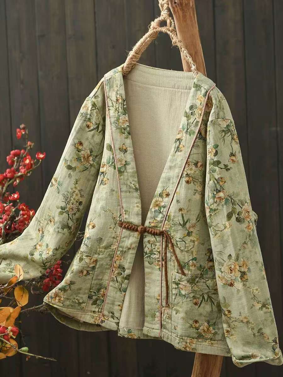 Johnature Женское Осеннее Повседневное Пальто В Винтажном Стиле С Принтом V-образным Вырезом Повседневное Пальто Длинные Рукава Ретро Мода Китайский Стиль Пальто