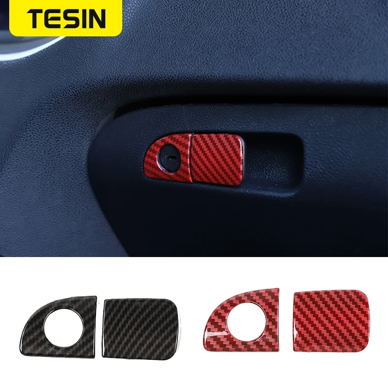 TESIN Interior Mouldings Car Co-pilot Storage Box Switch Panel Decoration Stickers Cover For Dodge Challenger 2015+Charger 2010+