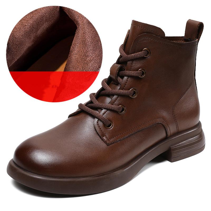 Johnature Ретро Британский Стиль Натуральная Кожа Туфли Круглый Носок Толстый Каблук Универсальные Короткие Женские Ботинки Из Яловичной Кожи 39