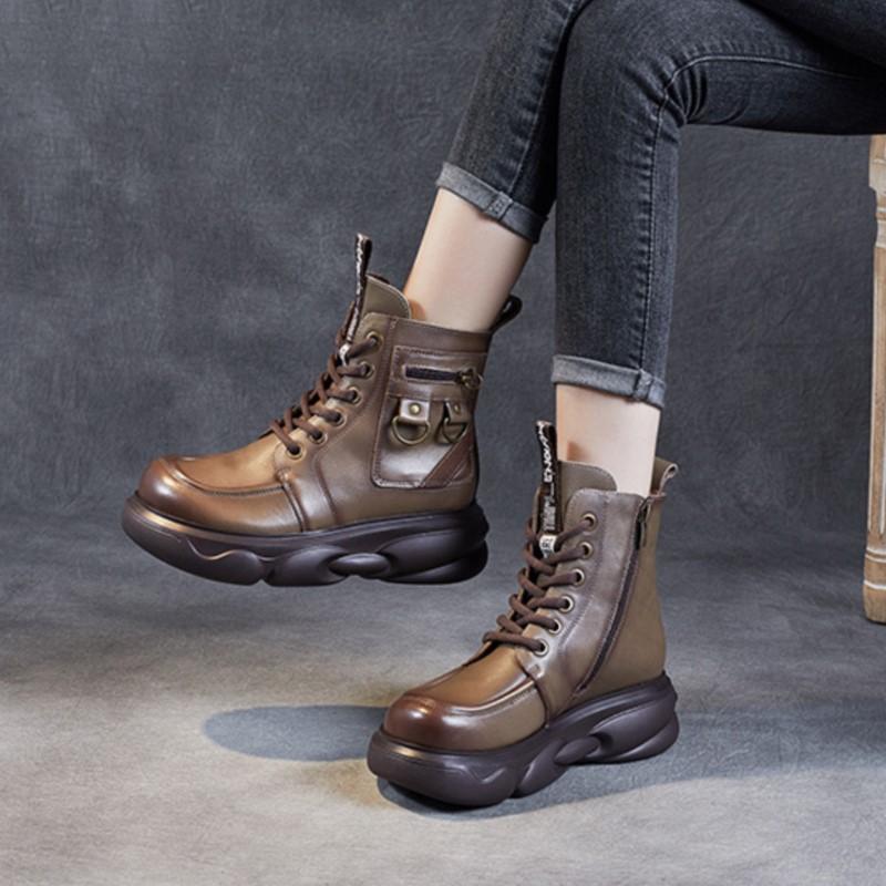 Johnature Ретро из натуральной кожи Короткие сапоги Женские удобные универсальные туфли на толстой подошве на платформе