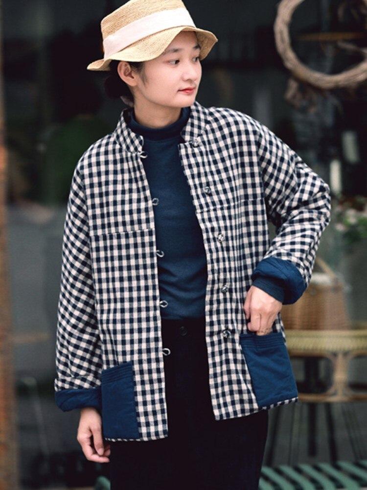 Johnature Ретро клетчатое лоскутное пальто с карманами, теплое толстое пальто, осенне-зимнее хлопково-льняное удобное женское пальто