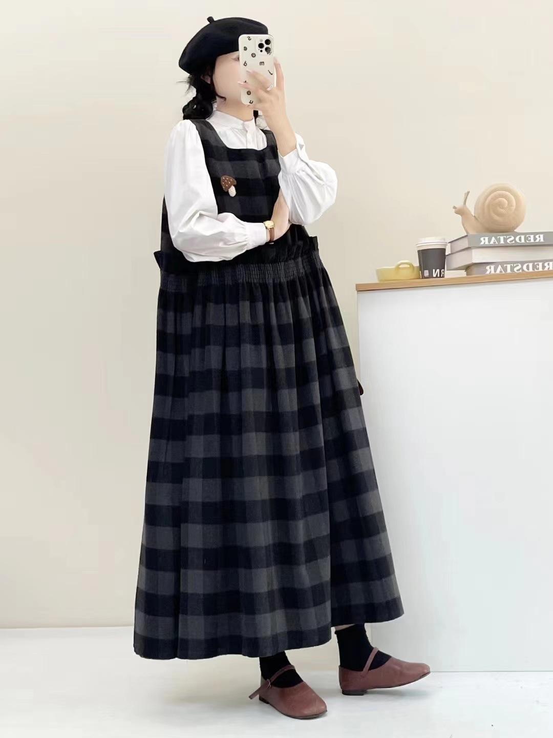 Johnature Ретро клетчатые платья осень-зима свободные универсальные пэчворк грибок край лес женское платье One Size чёрный