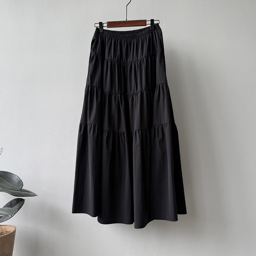 Johnature Французская клетчатая юбка-пачка женская летняя свободная на все случаи жизни простая юбка M чёрный