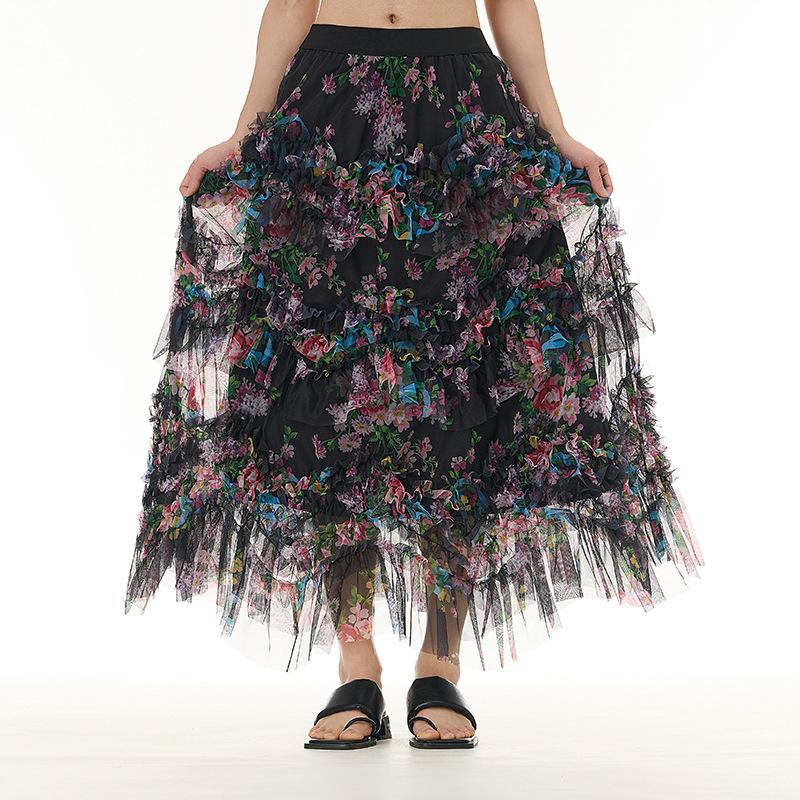 Johnature Юбки с сетчатым принтом нерегулярного кроя, весенне-летние женские свободные модные повседневные женские юбки трапециевидной формы One Size чёрный
