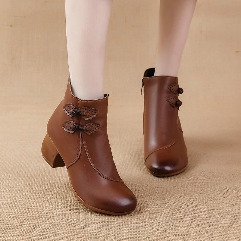 Johnature/ботинки из натуральной кожи на среднем каблуке, теплая удобная женская обувь в стиле ретро с круглым носком