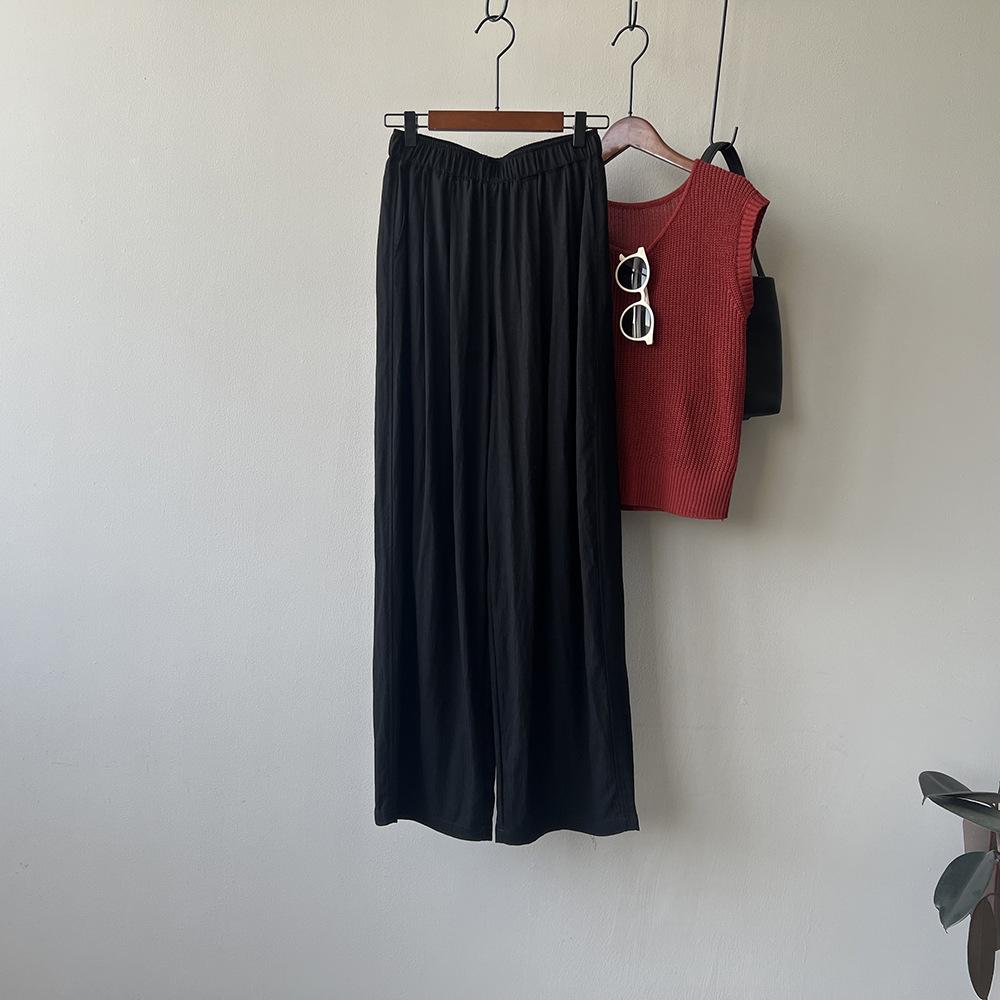 Johnature крутые брюки с высокой талией, женские брюки полной длины, летние универсальные повседневные прямые брюки с эластичной резинкой на талии M чёрный