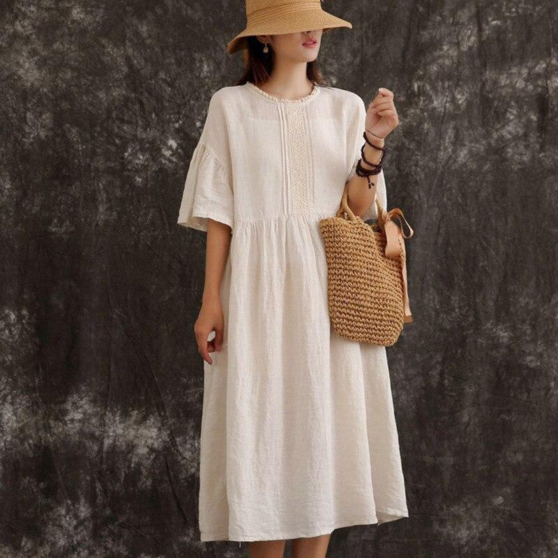 Johnature летнее хлопковое льняное женское платье с короткими рукавами, винтажное лоскутное женское платье