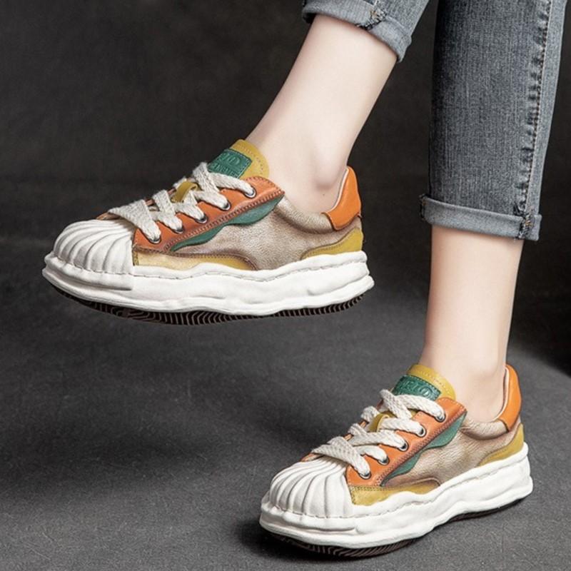 Johnature, разноцветная обувь на плоской подошве, женские кроссовки, вулканизированная обувь ручной работы на шнуровке из натуральной кожи для отдыха на платформе 36 оранжевый