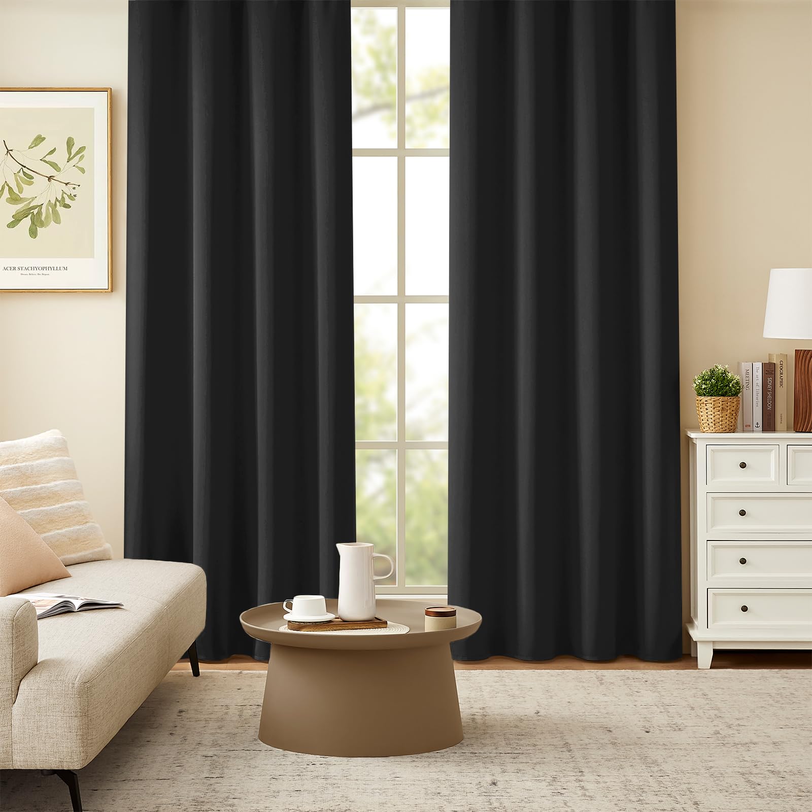 Joydeco Блэкаут Ширина 100см x Длина Сборка в складки Комплект Холодная Энергия Для Гостиной Формоустойчивые Плотные УФ Машинная Стирка Шторы, Черный, 110см, Складки, 2, чёрный