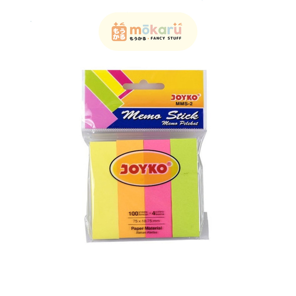 Joyko Memo Stick MMS-2 merupakan kertas warna-warni untuk menulis sebuah catatan kecil yang dapat ditempel di kertas maupun permukaan vertikal seperti kaca dinding dan papan tulis putih.
