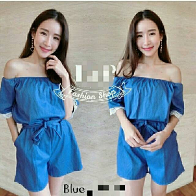 Bhn katun denim ada karet full tangan renda impor