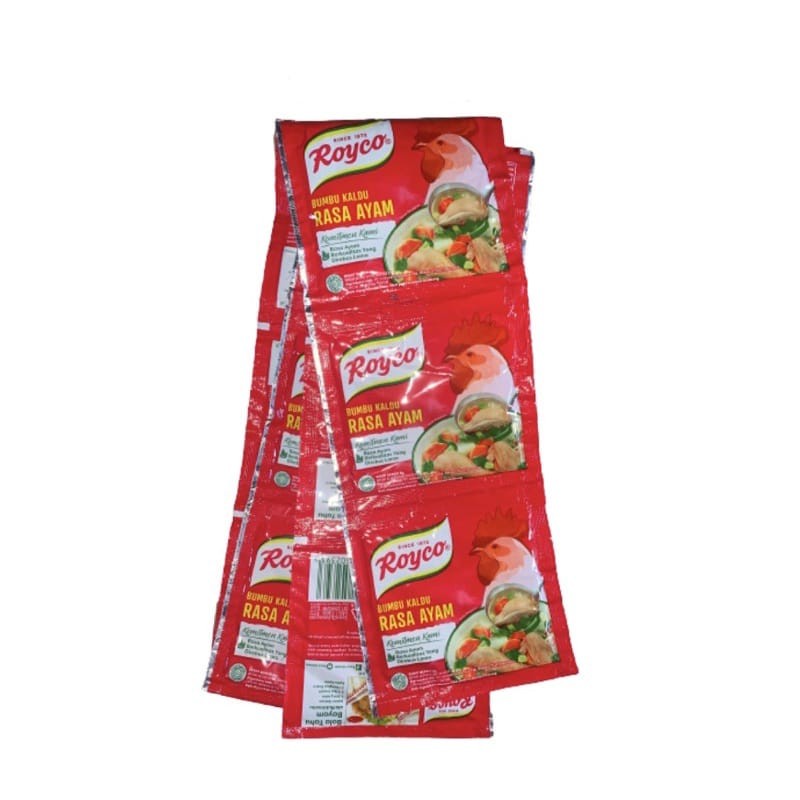 Royco Kaldu Ayam merupakan bumbu pelezat masakan yang terbuat dari bahan-bahan dan rempah pilihan, termasuk daging ayam pilihan yang direbus lama. Memberikan rasa kaldu yang mantap pada masakan Anda. Tambahkan Royco Kaldu Ayam ke dalam masakan rumah. Mudah larut dalam masakan.