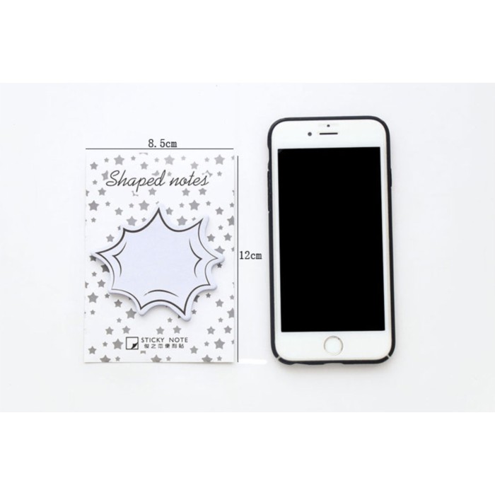 Stick note memo shaped notes ini terbuat dari kertas, serta lem perekat yang berkualitas. Tempat untuk menulisnya cukup besar, cukup untuk meluangkan semua isi hatimu.