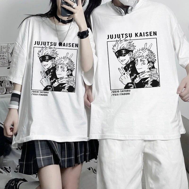 Jujutsu Kaisen Itadori Yuji Gojo Satoru Футболки Унисекс Женская уличная одежда Аниме 100% хлопок Лето Высокое качество с круглым вырезом с принтом Свободные