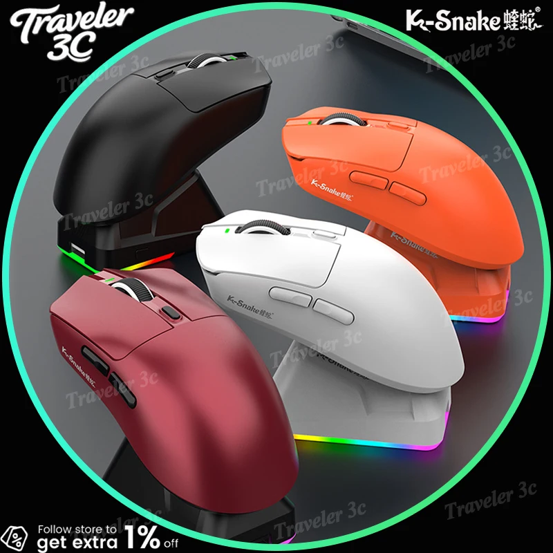 K-Snake X11 Беспроводная игровая мышь с тремя режимами Bluetooth 2,4 г PAW3311 12000 точек на дюйм 63 г Легкая эргономичная мышь 300 мАч с базовым ПК