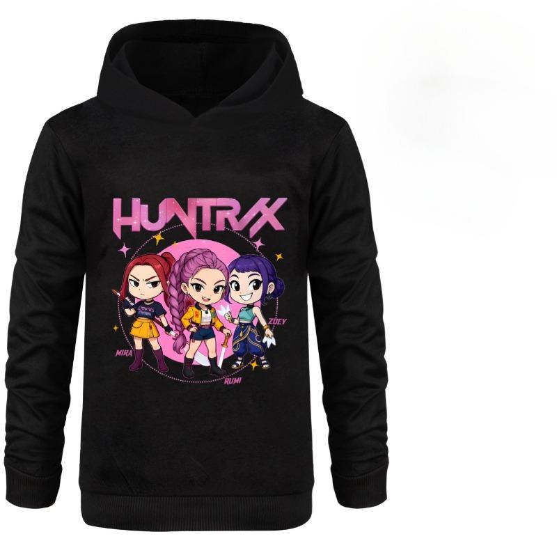 K-pop Серия «Охота на ведьм» Модная Удобная Толстая Теплая Детская Толстовка с Капюшоном-Мягкая Средней Растяжимости Полиэстеровая Ткань Свободного Кроя Одежда 140cm чёрный