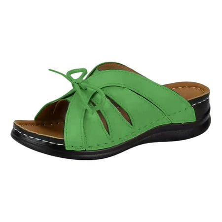 Ladies Fashion Retro Solid Color Leather Bow Tie Decorative Open Toe Thick Sole Sandals