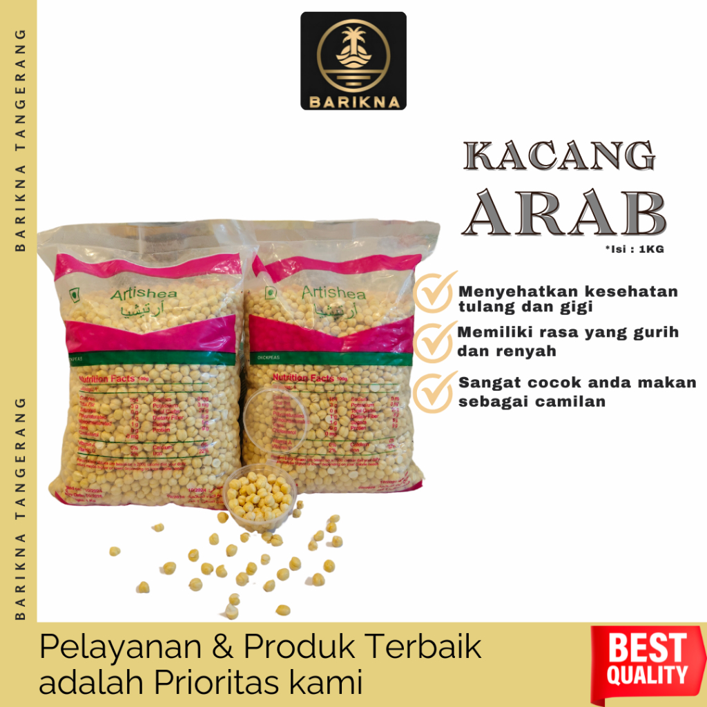 Kacang arab sendiri mengandung 45 gram lemak tak jenuh dalam setiap satu takaran sajinya. Selain itu kacang arab juga tinggi akan vitamin B, A, E, C, kalsium, potasium, dan magnesium. Seperti dilansir dari indiatimes.com.