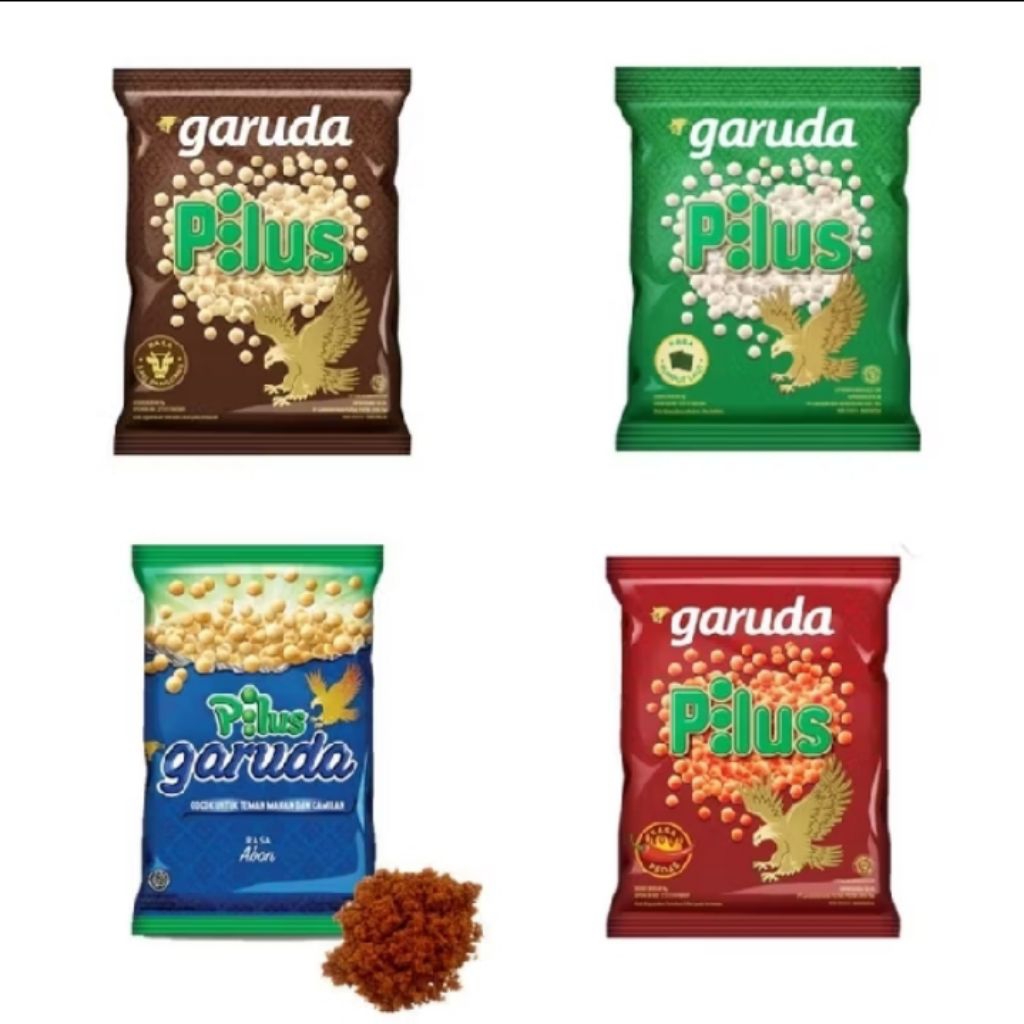 KACANG PILUS GARUDA, terbuat dari tepung tapioka berbentuk bulat kecil ditaburi berbagai macam rasa seperti rasa sapi panggang, keju, abon, pedas, campur dan rumput laut. Pilus adalah makanan tradisional asli Indonesia. Semua kalangan menyukainya