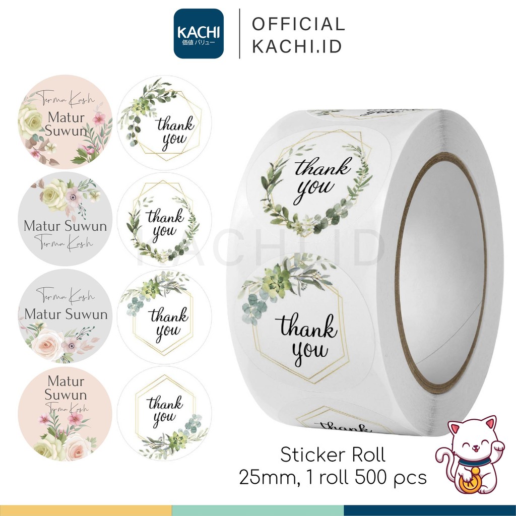 KACHI - 500 Pcs Stiker Label Thank You 2.5cm Sticker Roll Terima Kasih Warna Tempelan Ucapan SS001