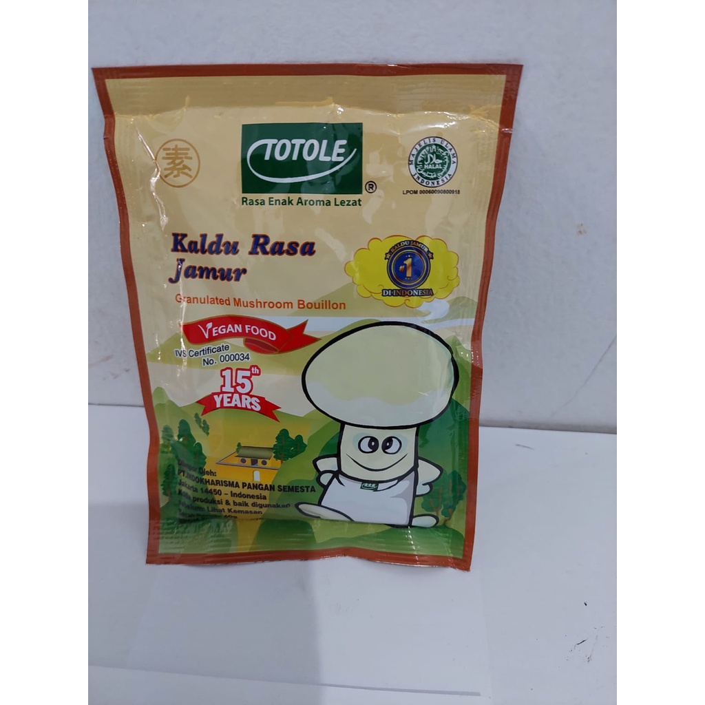 Totole berntuk granular atau butiran dari ekstrak jamur, beras, gula, protein sayur, dan tepung jagung